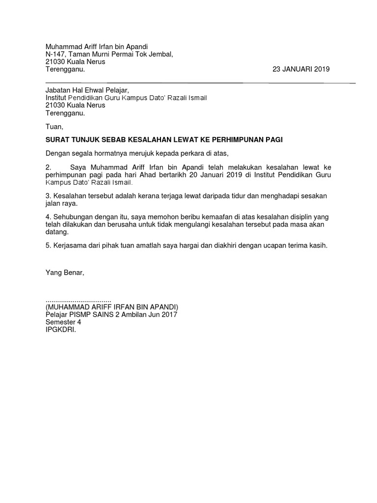 Contoh Surat Rasmi Tunjuk Sebab Pdf